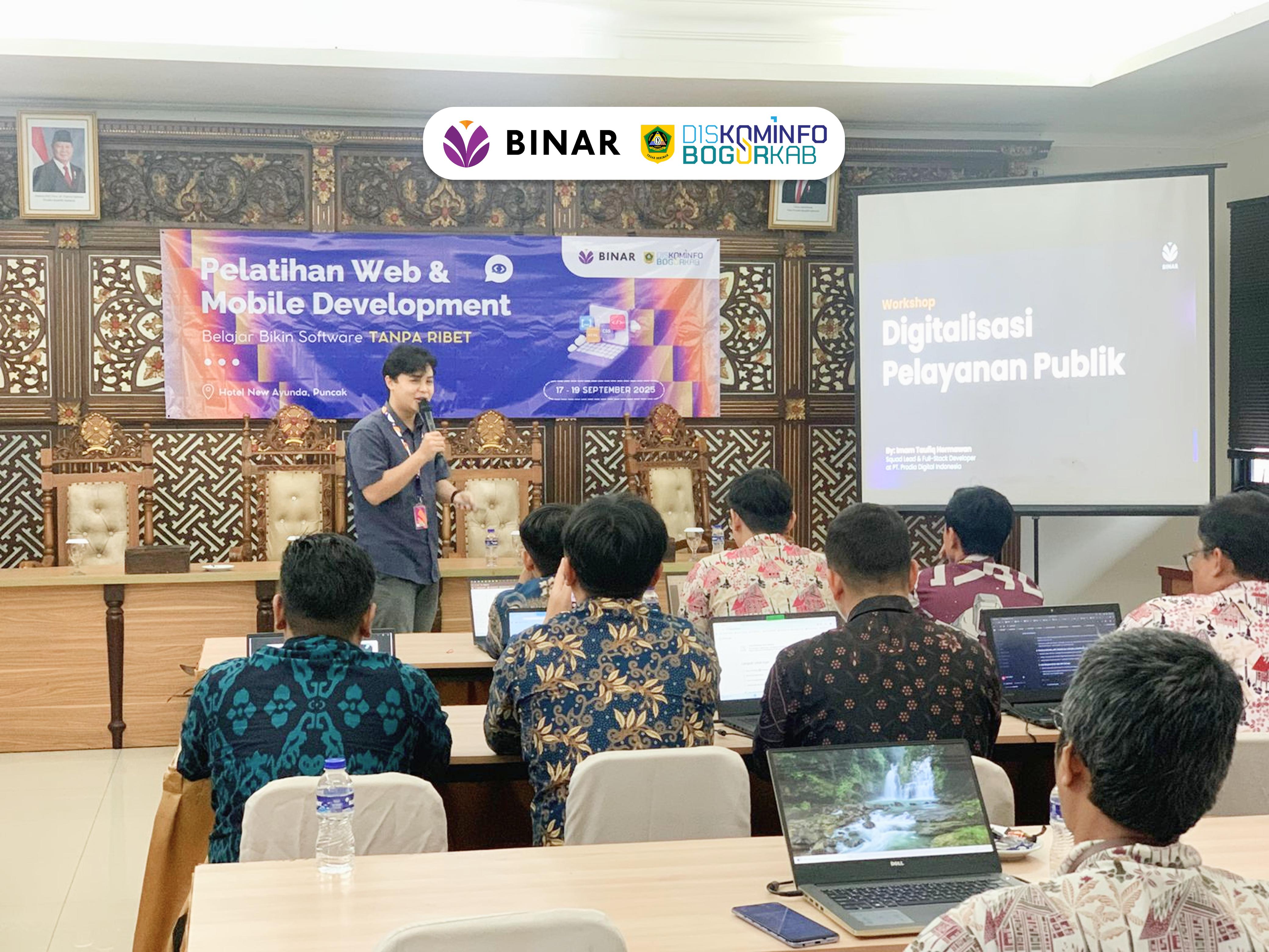 ASN Kecamatan Kabupaten Bogor mengikuti Workshop Software Development 3 hari (24 JP) hasil kolaborasi antara Diskominfo Kabupaten Bogor dan BINAR.